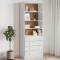 Bibliothèque tiroirs ALTA blanc 77x35x186,5cm bois massif pinCette bibliothèque offre une solution idéale pour organiser vos livres et ajoutera une touche de charme rustique à votre intérieur. Bois de pin massif : le bois de pin massif est un matériau naturel magnifique. Le bois de pin a un grain droit et les noeuds donnent au matériau son aspect caractéristique et rustique. Fabriquée en bois de pin massif, l'étagère à livres est durable et robuste.Grand espace de rangement : cette armoire de rangement dispose de 4 compartiments ouverts et de 4 tiroirs, offrant suffisamment d'espace pour garder votre collection de livres, magazines et documents bien organisés et à portée de main.Polyvalente : cette étagère à livres multifonctionnelle peut être utilisée comme étagère de rangement ou comme étagère d'affichage dans votre salon pour répondre à vos différents besoins.Facile à entretenir : l'étagère de rangement est facile à nettoyer à l'aide d'un chiffon humide et nécessite peu d'entretien. Attention :Pour éviter qu'il ne soit renversé, ce produit doit être utilisé avec le dispositif de fixation au mur fourni.
