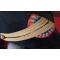 Il est de structure rigide en feutre taupé noir surjeté d’un galon en satin noir brodé de branches de lauriers croisées.