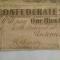 Billet de l'armée Confédérée datant de 1862, valeur d'époque 100 dollars en bon état ou l'on peut découvrir la scène en 1er plan d'une esclave portant une corbeille sur la tête et un train à vapeur sur le fond .Produit à Richmond durant la guerre de secession et contre-signé par le trésorier. Vendu sous film protecteur plastique.