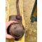 Il y a un petit trou et une réparation d’époque sur le cuir du porte trépied.