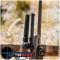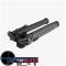 Les extensions de pieds coulissent et se verrouillent en toute sécurité en appuyant sur l'un des sept crans de verrouillage espacés d'un demi-pouce. Les jambes s'étendent sur 8.9 cm , de 17 à 26 cm. L'inclinaison totale de 50°, une exclusivité dans l'industrie, est contrôlée par un bouton moleté de verrouillage du bipied sans outil et facile à manipuler, situé entre les jambes allongées. Repliés, le boîtier et les jambes s'insèrent parfaitement sous le canon et mesurent un peu moins de 5,8 cm de profondeur et 8,4 cm de largeur. Les surfaces anodisées et les tolérances étroites et précises atténuent les grincements et les cliquetis.