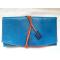 Blague à tabac artisanale en peau d'agneau bleu turquoise et marron.