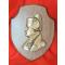 Blason en plâtre synthétique avec patine ton bois pour le blason et finition Laiton pour le profil