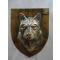 blason tête de loup avec patine réalisée à la poudre de marbre dim: 14 x 11 cm en platre polyester