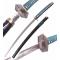 Magnifique reproduction du "Suigetsu" litteralement : "illusion", inspiree de l'univers d'Ichigo. La lame en acier stainless steel 440, est pre-affutee mais non tranchante. Le tsuba (garde) en metal est finement travaille. Le manche imitation peau de raie blanche, est rehausse d'un tsuka maki vert pin. Le fourreau en bois laque noir possède un sageo (cordelette) vert pin. Longueur de la lame : 69cm Longueur totale : 103cm Vente interdite aux mineurs.
