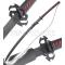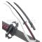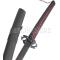 Magnifique reproduction du dernier bankai inspirée de l'univers d'Ichigo en version long. La lame pré-affutée en acier stainless steel noir dentelé en 3 parties. La dernière version de la garde en métal noir est finement travaillée qui donne un aspect plus agressif. Le manche imitation peau de raie rouge, est entouré d'un tsuka maki (laçage de tresse) noir et a une chainette au bout. Le fourreau en bois noir mat est rehaussé d'une cordelette noir.