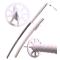 Le magnifique manche, imitation peau de raie blanche, est recouvert d'un tsuka maki (laçage de tresse) blanc avec a son extremite une chainette et un ruban.