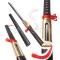 Magnifique reproduction exact du shikai de Kisuké Urahara inspirée de l'univers d'Ichigo. La lame est en acier 440 stainless steel noir et grise. Manche recouvert d'une tresse en coton noir avec ornement en métal, imitation laiton. Fourreau en bois noir. Garniture cordelette rouge et coquillages abs blanc.