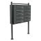Dimensions par compartiment: 360 x 270 x 100mm Dimensions fente à lettres: 325 x 30mm Dimensions de la boite aux lettres: 582 x 770 x 270mm Dimensions du support : 1500 x Ø 49mm / 85mm Poids en kg 17,7 Matériau Acier galvanisé Couleur Anthracite Épaisseur du matériau (en mm) 0,6 Large fente de boite aux lettres 10 Boite aux lettres avec porte-nom 2 clés par compartiment Avec un pied de support pratique Revêtement par poudre robuste Boite aux lettres au montage simple Accessoires 2x boîte aux lettres 10x 2 clés 1x support 1x matériel de montage