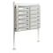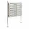 Dimensions par compartiment: 360 x 270 x 100mm Dimensions fente à lettres: 325 x 30mm Dimensions de la boite aux lettres: 696 x 770 x 270mm Dimensions du support : 1500 x Ø 49mm / 85mm Poids en kg 19,7 Matériau Acier inoxydable Couleur Acier affiné Épaisseur du matériau (en mm) 0,6 Large fente de boite aux lettres 12 Boite aux lettres avec porte-nom 2 clés par compartiment Avec un pied de support pratique Boite aux lettres au montage simple Accessoires 2x boîte aux lettres 12x 2 clés 1x support 1x matériel de montage