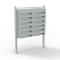 Dimensions par compartiment: 360 x 270 x 100mm Dimensions fente à lettres: 325 x 30mm Dimensions de la boite aux lettres: 696 x 770 x 270mm Dimensions du support : 1200 x Ø 50mm / 78mm Poids en kg 21 Matériau Acier galvanisé Couleur argenté