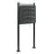 Dimensions par compartiment: 360 x 270 x 100mm Dimensions fente à lettres: 325 x 30mm Dimensions de la boite aux lettres: 470 x 385 x 270mm Dimensions du support : 1500 x Ø 49mm / 85mm Poids en kg 10,49 Matériau Acier galvanisé Couleur Anthracite Épaisseur du matériau (en mm) 0,6 Large fente de boite aux lettres 4 Boite aux lettres avec porte-nom 2 clés par compartiment Avec un pied de support pratique Revêtement par poudre robuste Boite aux lettres au montage simple Accessoires 1x boîte aux lettres 4x 2 clés 1x support 1x matériel de montage