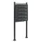 Dimensions par compartiment: 360 x 270 x 100mm Dimensions fente à lettres: 325 x 30mm Dimensions de la boite aux lettres: 585 x 385 x 270mm Dimensions du support : 1500 x Ø 49mm / 85mm Poids en kg 11,82 Matériau Acier galvanisé Couleur Anthracite Épaisseur du matériau (en mm) 0,6 Large fente de boite aux lettres 5 Boite aux lettres avec porte-nom 2 clés par compartiment Avec un pied de support pratique Revêtement par poudre robuste Boite aux lettres au montage simple Accessoires 1x boîte aux lettres 5x 2 clés 1x support 1x matériel de montage