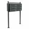 Dimensions par compartiment: 360 x 270 x 100mm Dimensions fente à lettres: 325 x 30mm Dimensions de la boite aux lettres: 354 x 770 x 270mm Dimensions du support : 1200 x Ø 49mm / 85mm Poids en kg 12,2 Matériau Acier galvanisé Couleur Anthracite Épaisseur du matériau (en mm) 0,6 Application / Information / Caractéristiques Large fente de boite aux lettres 6 Boite aux lettres avec porte-nom 2 clés par compartiment Avec un pied de support pratique Revêtement par poudre robuste Boite aux lettres au montage simple Accessoires 2x boîte aux lettres 6x 2 clés 1x support 1x matériel de montage