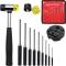 Ce kit inclut également un maillet spécial avec deux embouts en caoutchouc pour régler la force d'impact, protégeant ainsi les goupilles et les surfaces de travail.