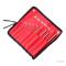 Pour une commodité maximale, l'ensemble est fourni dans un étui en toile rouge pratique, facilitant le stockage et le transport.