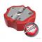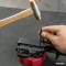 Le support est muni de broches de verrouillage placées sous le plateau. Une fois poinçonnées, les goupilles ne rouleront plus sur l'établi grâce une bande externe, qui prévient leur déplacement, tout en permettant à un aimant interne, logé dans l'une de ses faces internes, de retenir les éléments métalliques, ce qui évite qu'ils ne soient égarés.