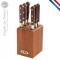 La gamme "Le prince gastronome" est un coup de coeur istyl. Les lignes atemporelles de ce couteau sont indémodables. Rares sont les couteaux qui peuvent se marier aussi bien dans une cuisine traditionnelle que dans une cuisine design. Le label "Esprit de Thiers" leur reconnait une excellente qualité. Ce cube et ses 6 couteaux à steak saura se rendre pratique et décoratif dans une cuisine. Une bonne idée de cadeau ! Caractéristiques techniques » Taille des steaks : 11 cm » Poids total : 800 gr » Bloc en "hêtre" teinté » Manche en palissandre » Lame en inox » Mitre en laiton » 3 rivets en laiton