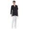 Tunique manches longues transformables avec passant porte badge sur la poitrine 2 poches basses plaquées 1 poche BIP 1 fente dos avec passepoil fermeture par pressions longueur 75 cm.