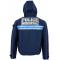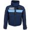 1 poche à rabat sur manche gauche avec compartiments stylo et sifflet, plusieurs poches zippées sur les manches, bas de manches ajustables par pattes velcro en silicone, écusson écu pour insigne sur chaque manche