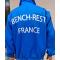 Blouson de tir transformable en gilet . Etanche au vent et à la pluie. grande taille couleur bleu france avec badges siglé dans le dos bench rest france .Seulement deux prototypes fabriqués. Grande poche intérieure avec fermeture éclair. Peu servi.