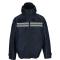 1 poche à rabat sur manche gauche avec compartiments stylo et sifflet, 1 poche zippée sur manche droite, bas de manches ajustables par pattes velcro, écusson écu pour insigne sur chaque manche.