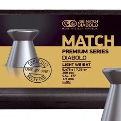 Les JSB Match Premium Heavy se distinguent par leur poids optimisé, offrant une stabilité améliorée en vol pour un impact précis. La densité et la fabrication méticuleuse assurent une trajectoire de tir régulière. Ces caractéristiques en font un choix essentiel pour maximiser les résultats en compétition ou à l'entraînement.