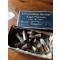 Boite métalique de fabriquation suisse (Thun) contenant 19 cartouches en 320 poudre noire amorce cachée en exellant état de concervation.