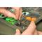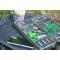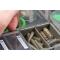 De part et d'autre, des compartiments à couvercle clipsable pour lead clips (clip plombs), manchons et autres accessoires de montage offrent un accès facile.
