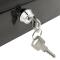 À l'intérieur de la mallette se trouve un insert avec cinq compartiments pour les pièces de monnaie ou les petits bijoux. La caisse peut être fermée à l'aide d'une clé.