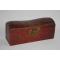 Boite Oreiller en bois recouvert de cuir patiné rouge, Chine