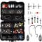 Un kit complet: ensemble de 160pcs d’accessoires de pêche, y compris une boîte de rangement et 7 types d’accessoires différentes qui peuvent répondre aux besions de pêche.