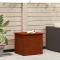 Boîte de Rangement Extérieure Rouillé 55 x 50,5 x 50 cm AcierLa boîte de rangement extérieure industrielle est faite pour allier fonctionnalité et style urbain moderne, comme celui des lofts. Avec son cadre en acier, elle ne sert pas juste à organiser, mais elle embellit aussi n'importe quel espace extérieur, que ce soit dans un jardin ou sur une terrasse. Matériaux : Fabriquée en acier de haute qualité, cette boîte assure une solution fiable pour le rangement extérieur. Elle résiste à diverses conditions météo, donc pas de souci pour un usage extérieur, que ce soit dans un jardin, sur une terrasse ou ailleurs. Résistance aux intempéries : Spécialement conçue pour supporter les éléments, cette boîte garde vos affaires à l'abri de la pluie, du vent et du soleil. Avec ses propriétés imperméables, vous pouvez compter sur elle pour maintenir son intégrité, peu importe le temps. Design fonctionnel : Avec un couvercle à vérin à gaz, accéder à son contenu est super facile et en toute sécurité. Le mécanisme assure une ouverture douce, vous permettant de ranger et de prendre des objets facilement, sans que le couvercle ne se referme brusquement. Optimisation de l'espace : Cette boîte est conçue pour maximiser l'espace tout en prenant peu de place. Idéale pour ceux qui cherchent à garder leurs affaires en extérieur bien organisées sans encombrer. Instructions d'entretien : Pour garder son style industriel, évitez de l'exposer trop au soleil et n'utilisez pas de produits chimiques forts pour le nettoyage. Un petit coup de chiffon doux de temps en temps suffira pour garder son apparence et sa durabilité. Bon à savoir : Ce produit n'est pas encore rouillé et a une couleur métallique normale lorsque vous le recevez, mais la rouille se développera au fil du temps. Vous pourriez accélérer le processus de rouille en le pulvérisant avec de l'eau savonneuse et de l'eau salée. Pour que vos vêtements ne soient pas tachés, évitez tout contact avec la couche de rouille qui se développe.