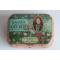 Ancienne boîte à savon galbée CÔ BA en tôle chromolithographie, F.Moreau & fils, Lyon, France décor floral orientaliste et portrait d'une indochinoise traces d'usage, voir photos