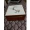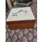Le couvercle est orné d'un carreau de faïence dont le décor est peint à la main.