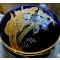 Le couvercle présente un superbe décor iris et libellule dans le style Art Nouveau, avec dorure en relief sur fond bleu cobalt.
