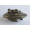 Charmante boite a bijoux d'époque fin XIXe siècle bronze argenté a décor d'un chérubin d'amour se reposant sur un coquillage soutenu par trois dauphins bon état