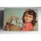 Ancienne boîte à biscuit en tôle imprimée, Fillette et Chatons