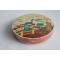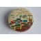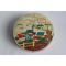 Ancienne boîte en tôle avec un décor de village en bord de mer