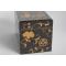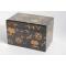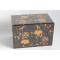 Ancienne boite tebako en laque hiramaki-e sur fond ro-iro, décoré de feuilles de lierre (tsuta) et rinceaux feuillagés. L'ensemble ponctué de blasons «Maru Migibanare Tachiaoi» (feuilles de rose trémière dressées dans un cercle) achetée en 1888 au Japon, voir feuille manuscrite jointe époque Meiji (1868-1912) légères traces d'usage, voir photos