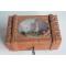 Ancienne Boite en bois sculpté avec une peinture sur le couvercle de la Cascade de Pissevache paysage dans les Alpes Suisse bon état, avec clef, leger manque de peinture, voir photos