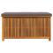 Boîte à coussins d'extérieur 113x50x60,5cm bois massif d'acaciaCette boîte à coussins est parfaite pour garder vos coussins de meubles d'extérieur, fournitures de jardinage, serviettes de piscine et d'autres articles organisés et facilement accessibles. Cadre stable et durable : le bois d'acacia massif est connu pour sa solidité et sa durabilité. Ses couleurs variées et ses grains uniques lui confèrent un aspect attrayant. Sa stabilité et sa résistance aux intempéries en font un matériau idéal pour la fabrication de meubles d'intérieur et d'extérieur. Fonction de rangement : le coussin de rangement est doté d'un espace de rangement en dessous, équipé d'un sac résistant à l'eau pour ranger coussins, jouets et autres objets. Le sac intérieur peut être solidement fixé au siège à l'aide de fermetures auto-agrippantes, assurant la stabilité et empêchant tout mouvement. Grande ventilation : la boîte à coussins de jardin est conçue avec des lattes ouvertes qui garantissent une ventilation optimale. Couvercle pratique : les boîtes d'extérieur sont dotées d'un couvercle, qui empêche la poussière de s'accumuler sur les objets et renforce la sécurité. Design élégant : la texture en bois confère à la boîte de rangement de jardin une sensation à la fois discrète et intemporelle, qui convient à toute décoration. Bon à savoir : Pour que vos meubles d'extérieur restent beaux, nous vous recommandons de les protéger avec une housse imperméable.