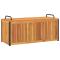 Boîte à coussins d'extérieur bois d'acacia solide et acierCette boîte à coussins en bois est parfaite pour ranger vos coussins, oreillers, couvertures, jouets et autres articles dans le jardin ou sur le patio. Cadre stable et durable : le bois d'acacia massif est connu pour sa solidité et sa durabilité. Ses couleurs variées et ses grains uniques lui confèrent un aspect attrayant. Sa stabilité et sa résistance aux intempéries en font un matériau idéal pour la fabrication de meubles d'intérieur et d'extérieur.Grand espace de rangement : l'espace de rangement facilite l'organisation des articles. Vous pouvez ranger coussins, tapis, jouets et autres objets à portée de main et bien organisés.Poignée pratique : la poignée en acier enduit de poudre est solide, stable, durable et résistant à la corrosion et aux intempéries, ce qui garantit des performances durables. Bon à savoir :Pour que vos meubles d'extérieur restent beaux, nous vous recommandons de les protéger avec une housse imperméable.