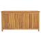 Boîte de jardin 114x50x58 cm Bois massif de teckAvec un couvercle facile à ouvrir, cette boîte de jardin vous donne beaucoup d'espace pour ranger vos outils et autres articles utiles. Matériau de première qualité : le bois de teck massif est un matériau naturel magnifique. Il a été chevronné, séché au four, puis poncé finement pour lui donner un aspect très lisse. Le bois de teck est très solide et résiste aux intempéries. Beaucoup d'espace : le coffre spacieux de cette boîte de jardin peut être utilisé pour ranger des coussins, des outils de jardinage et d'autres accessoires, tout en gardant le contenu organisé. Accessoires utiles : il y a un sac en PE à l'intérieur. Il est très utile de mettre les choses dans ce sac pour les garder au sec. Occasions applicables : cette boîte de jardin est idéale pour le jardin, l'abri et le garage. Bon à savoir : Pour prolonger la durée de vie de votre mobilier d'extérieur, nous vous recommandons de le protéger avec une housse imperméable.