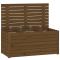 Boîte de jardin marron miel 101x50,5x46,5 cm bois massif de pinCette boîte de jardin vous donne beaucoup d'espace pour ranger vos outils et autres articles utiles. Bois de pin massif : le bois de pin massif est un matériau naturel magnifique. Le bois de pin a un grain droit et les noeuds donnent au matériau son aspect caractéristique et rustique. Fabriqué en pin massif, ce coffre de terrasse est robuste et stable. Grand espace de rangement : cette boîte de rangement offre un grand espace de stockage pour ranger les coussins, les jouets des enfants, les outils de jardinage et d'autres accessoires, tout en gardant le contenu organisé. Couvercle pratique : la boîte d'extérieur est équipée d'un couvercle, qui non seulement empêche les articles d'être poussiéreux, mais ajoute également de la sécurité supplémentaire. Bon à savoir : Pour faciliter au maximum le montage, chaque produit est livré avec des instructions. Remarque : Pour que vos meubles d'extérieur restent beaux, nous vous recommandons de les protéger avec une housse imperméable. Maximum 110 kg par siège.