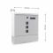Boite aux lettres: 30,5 x 9,6 x 33,5 cm Compartiment intérieur ( dimensions): 29,8 x 23 x 7 cm Dimensions de la fente: 29,8 x 3 cm Compartiment pour journaux: 30 x 8,3 x 9 cm Porte- étiquette: 6,5 x 1,5 cm Distance entre les trous de fixation: 17 x 16,8 cm Taille des trous de fixation: ? 5 mm Matériau Acier galvanisé Couleur blanche Épaisseur du matériau (en mm) 1 Boite aux lettres pour un montage mural Accessoires 1x boîte aux lettres 1x matériel de montage 2x clés