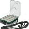 Boîte à mouches livrée avec un cordon amovible. - Boîte double face avec couvercle transparent - Capacité : environ 130 mouches - Mousse haute densité fendue - Dimensions : 99 × 72 × 42 mm