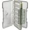 Boite à mouches pour petites, moyennes et grosses mouches. Se glisse facilement dans la poche de votre gilet. Ouverture très facile par simple pression sur un clip.- 2 Couvercles transparents pour visualiser facilement le contenu de la boîte. - Fermeture sécurisée et robuste. - Charnière métallique, double face - Capacité : 264 mouches petites et moyennes - 157 x 99 x 38 mm - Boite étanche