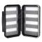 Les longues fentes de mousses permettent de régler le positionnement de la mouche en faisant glisser la pointe de l'hameçon - Dimension : 155 × 110 × 40 mm - Contenance : environ 144 mouches - Plaques mousses amovibles - Boite étanche