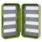 Les longues fentes de mousses permettent de régler le positionnement de la mouche en faisant glisser la pointe de l'hameçon. - Dimension : 155 × 110 × 40 mm - Contenance : environ 144 mouches - Plaques mousses amovibles - Boite étanche